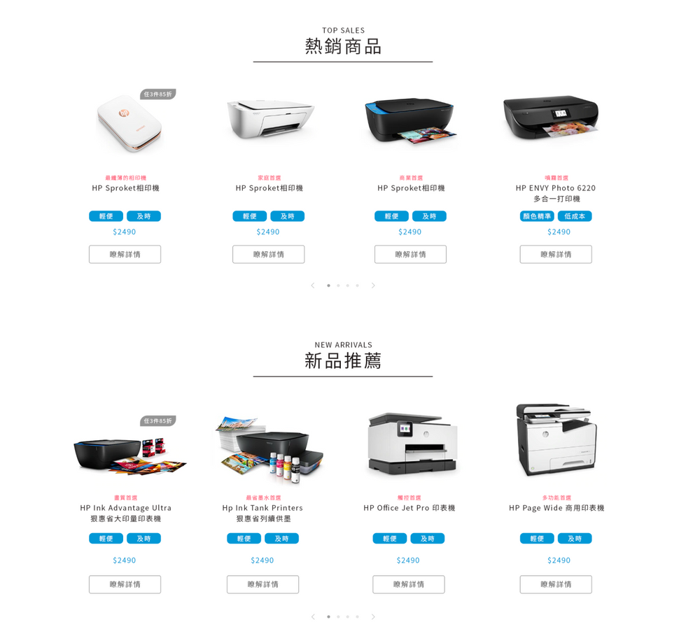 以多格瀑布狀帶為HP多種類型的產品特性做視覺效果
